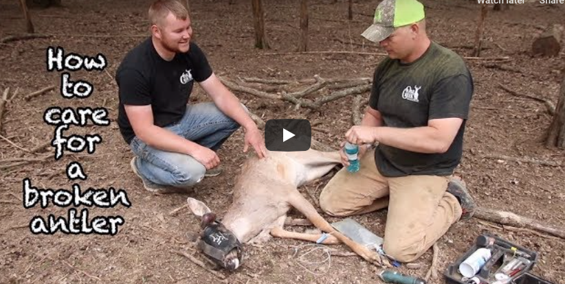 Deer Care: Yearling with broken antler at Oak Creek In the video, Nick and Jacob spotted a yearling in the breeder operation with a broken antler. They have to sedate the buck, cut the antler and and medicate him to make sure he has the best chances to get better….
